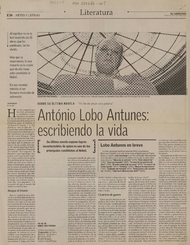 Yo no podría hacer una novela sobre Vargas Llosa (entrevista) [artículo] Luis Fernando Afanador.