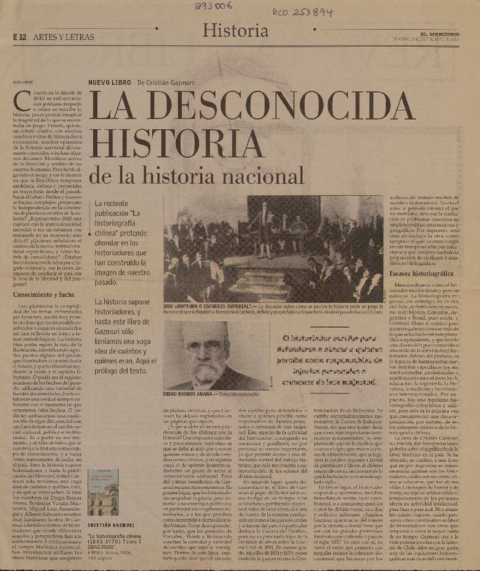 100 años de cultura chilena [artículo] Cristián Barros.