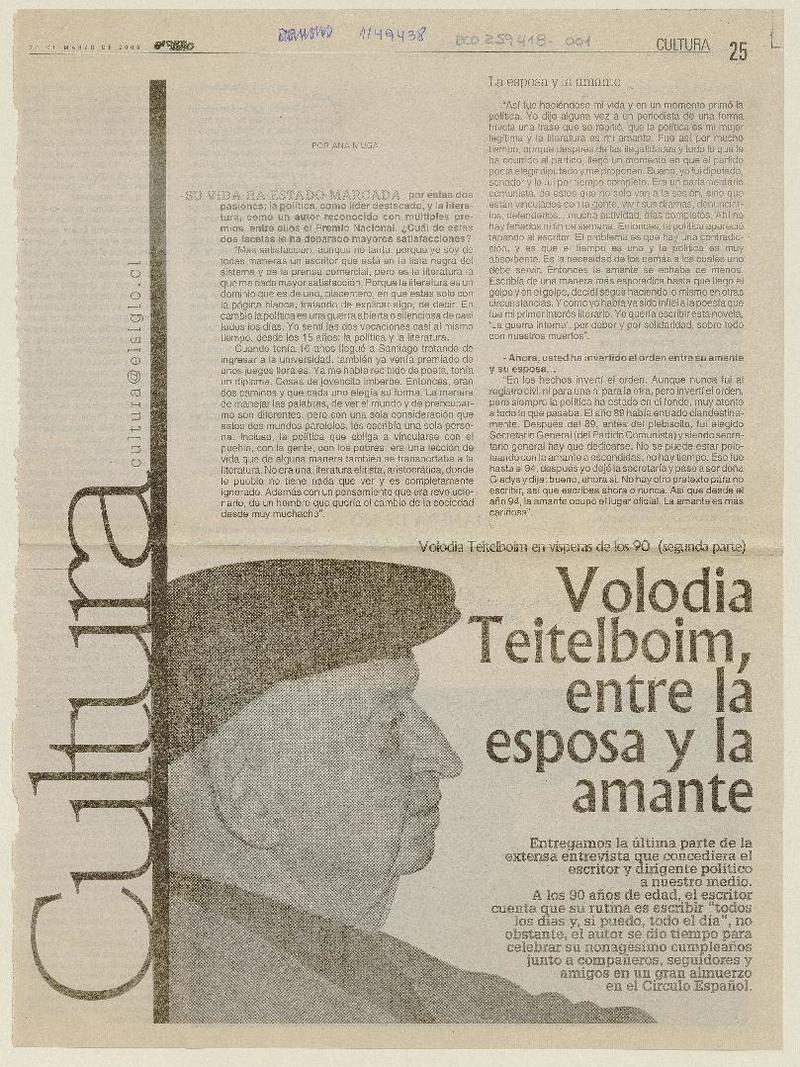 Volodia Teitelboin, entre la esposa y la amante segunda parte : [entrevista] [artículo] Ana Muga.