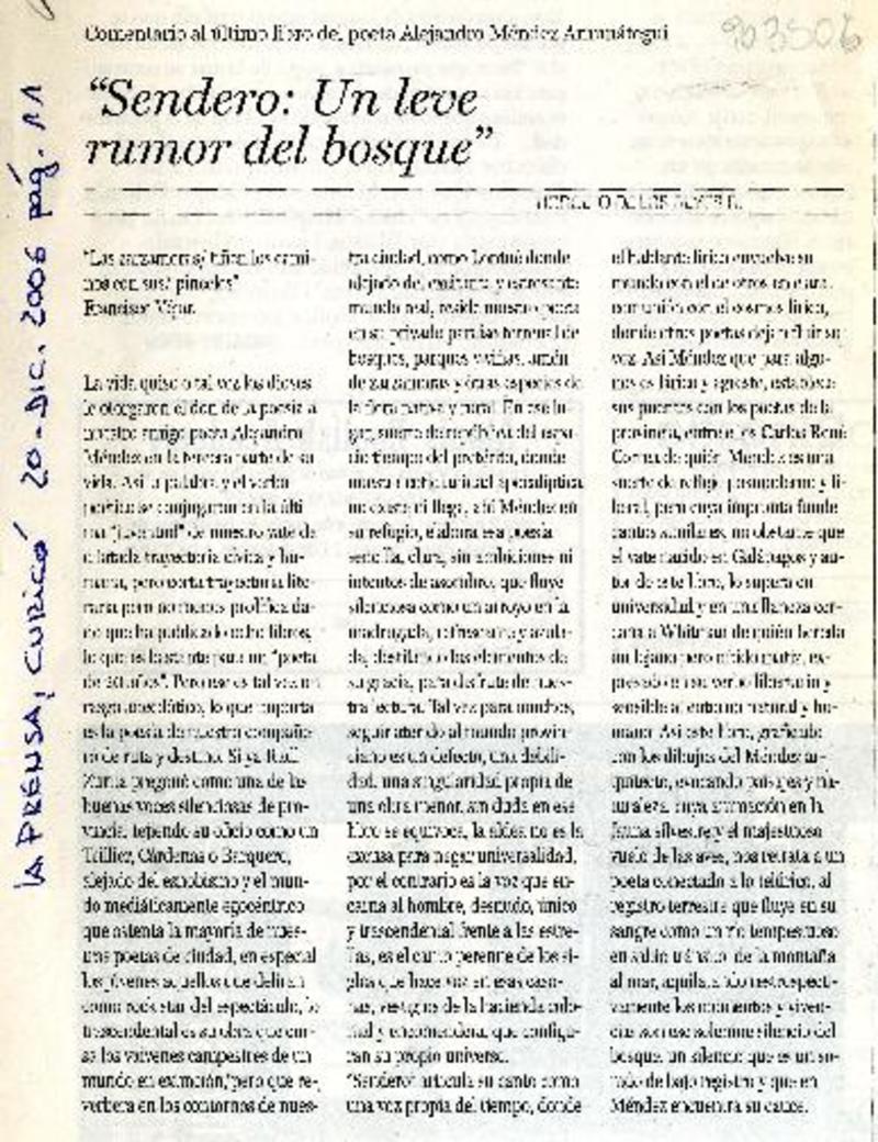 Violeta se fue a los cielos [artículo] Alejandro Lavquen.