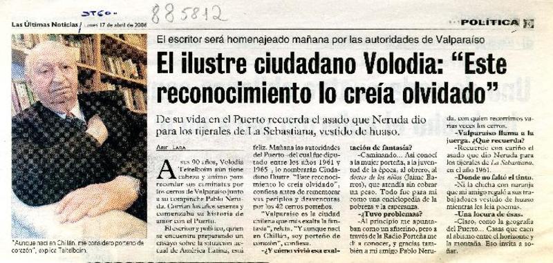 Volodia rememora partes de sus errancias [artículo] Wellington Rojas Valdebenito.