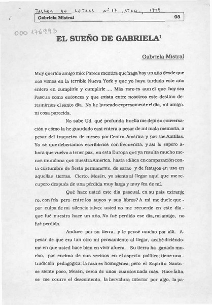 El sueño de Gabriela [artículo] Gabriela Mistral.