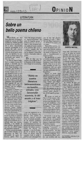 Sobre un bello poema chileno [artículo] Gabriela Mistral.