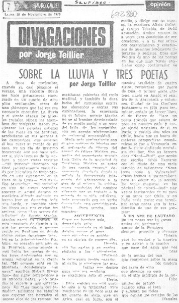 Sobre la lluvia y tres poetas [artículo] Jorge Teillier.