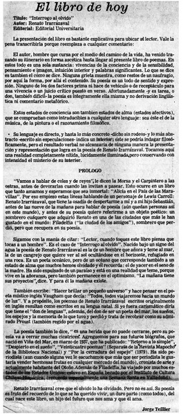 "Interrogatorio al olvido" [artículo] Jorge Teillier.