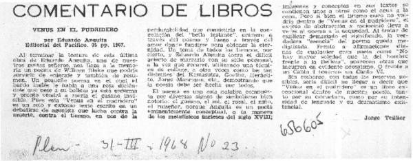 Sobre una antología [artículo] Jorge Teillier.
