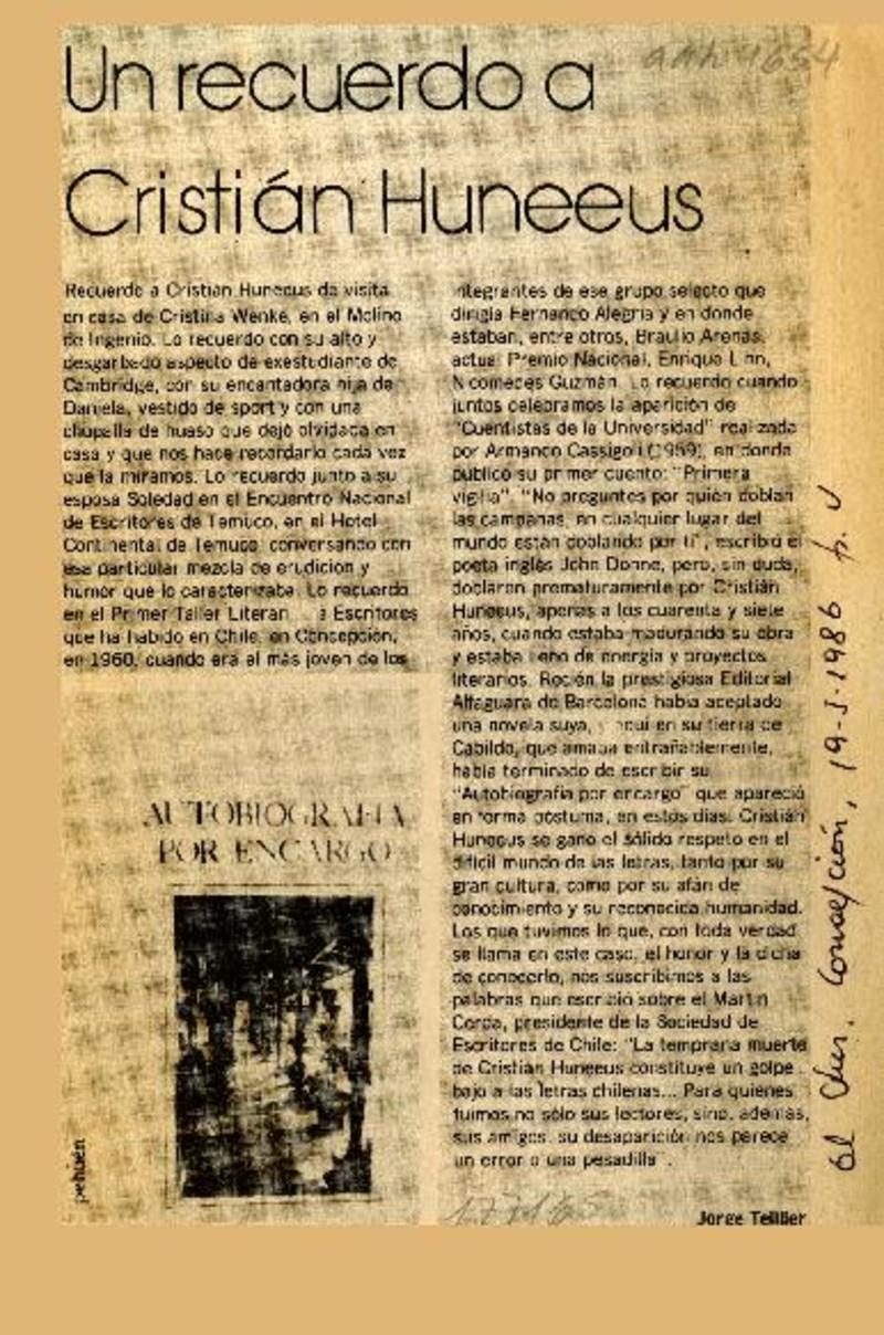 Un recuerdo a Cristián Huneeus [artículo] Jorge Teillier.