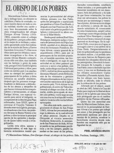 Vicario apostólico de la araucanía [artículo] Fidel Araneda Bravo.