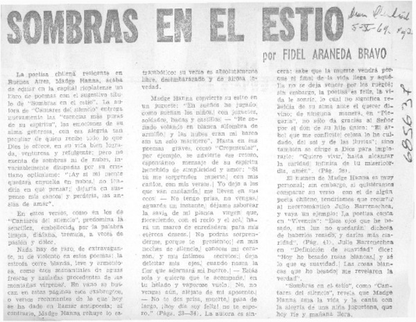 Sombras en el estío [artículo] Fidel Araneda Bravo.