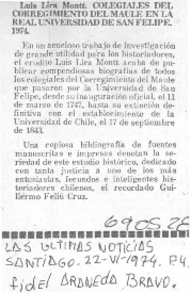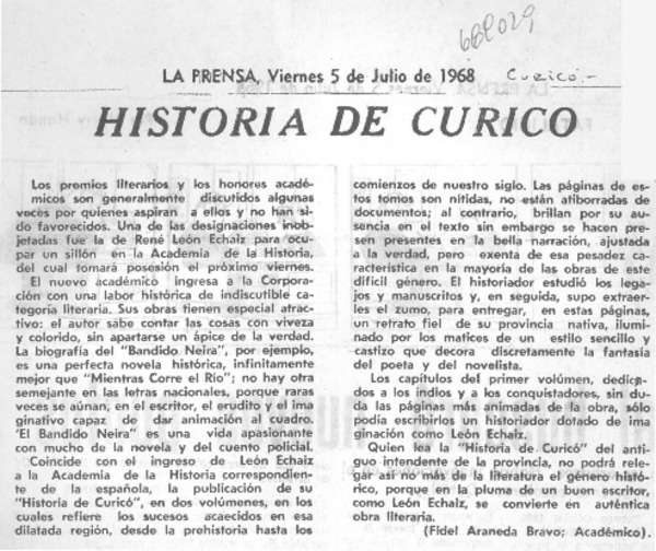 A la luz de la historia [artículo] Fidel Araneda Bravo.