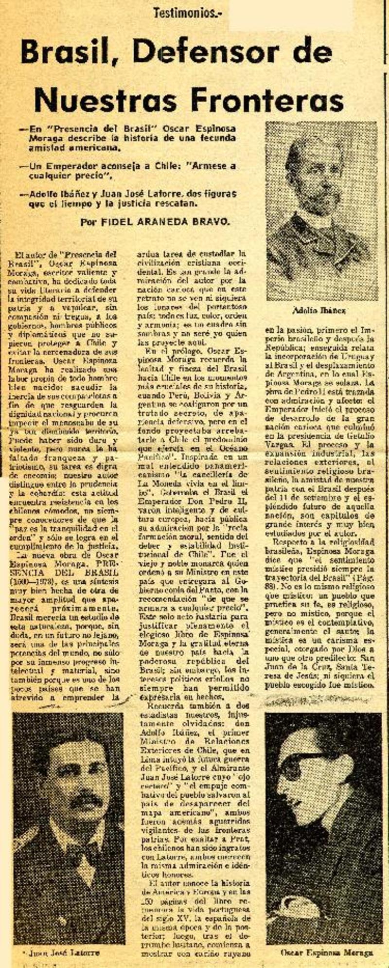 Autores chilenos - Latorre, Juan José - Espinosa Moraga, Oscar - Ibáñez, Adolfo - Presencia del Brasil (1500-1973)