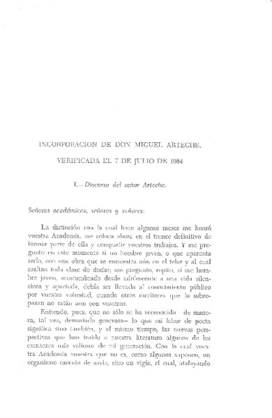 Incorporación de don Miguel Arteche : verificada el 7 de julio de 1964 [artículo] Eduardo Barrios.