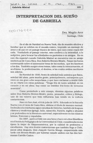 Interpretación del sueño de Gabriela [artículo] Magda Arce.
