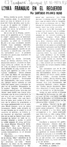Lenka Franulic en el recuerdo [artículo] Santiago Polanco Nuño.