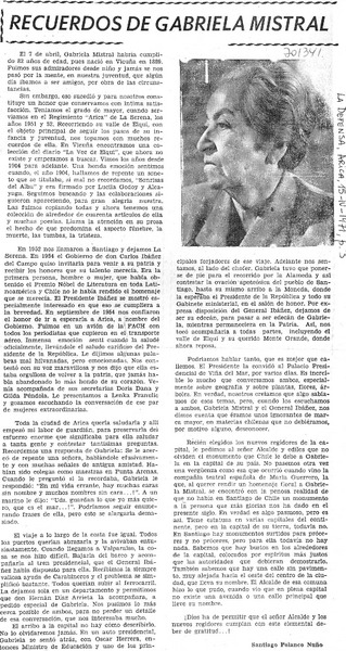 Recuerdos de Gabriela Mistral [artículo] Santiago Polanco Nuño.