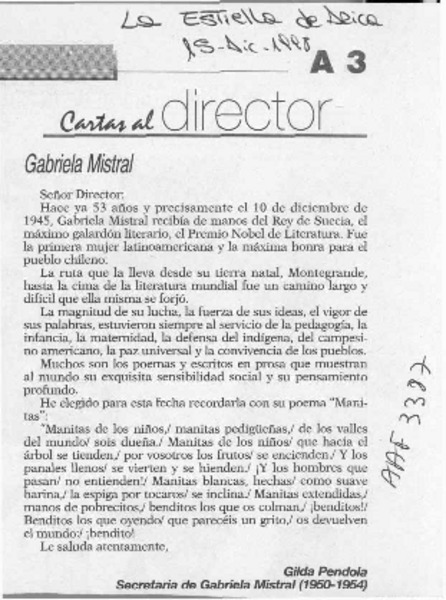 Gabriela Mistral [artículo] Gilda Péndola.