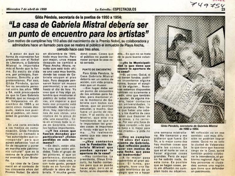 La casa de Gabriela Mistral debería ser un punto de encuentro para los artistas": [entrevistas] [artículo]