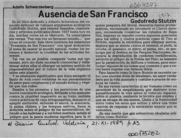 STUTZIN, GODOFREDO - AUSENCIA DE SAN FRANCISCO