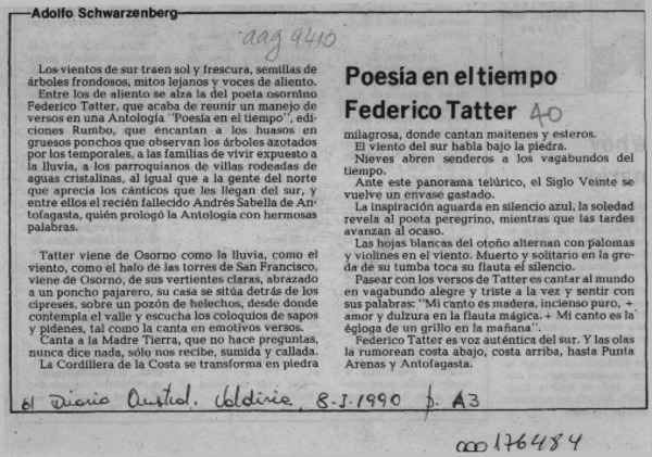 Poesía en el tiempo Federico Tatter [artículo] Adolfo Schwarzenberg.