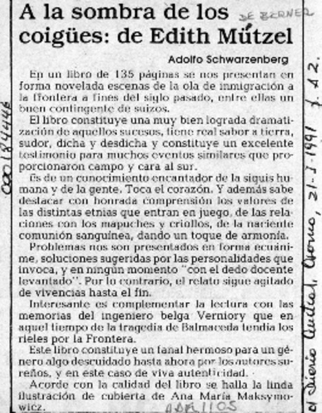 A la sombra de los coigües, de Edith Mützel [artículo] Adolfo Schwarzenberg.