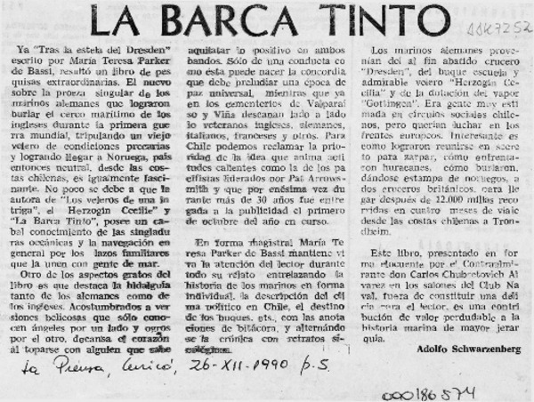 La barca tinto [artículo] Adolfo Schwarzenberg.