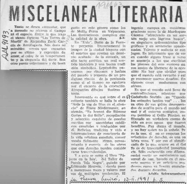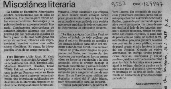 Miscelánea literaria [artículo] Adolfo Schwarzenberg.