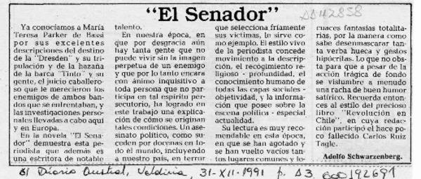 "El senador" [artículo] Adolfo Schwarzenberg.