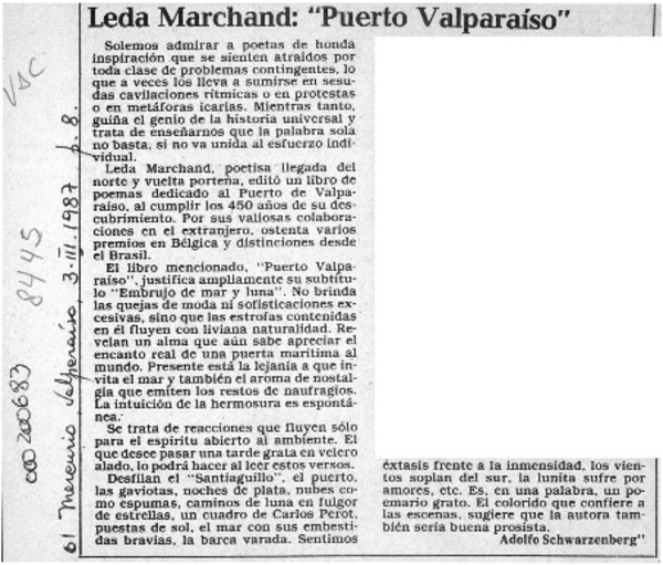 Leda Marchand, "Puerto Valparaíso" [artículo] Adolfo Schwarzenberg.