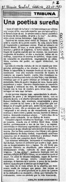 Una poetisa sureña [artículo] Adolfo Schwarzenberg.