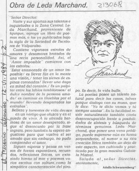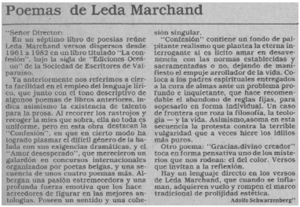 Poemas de Leda Marchand [artículo] Adolfo Schwarzenberg.