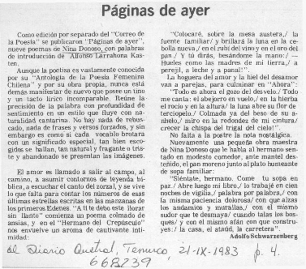 Autores chilenos - Donoso, Nina - Páginas de ayer