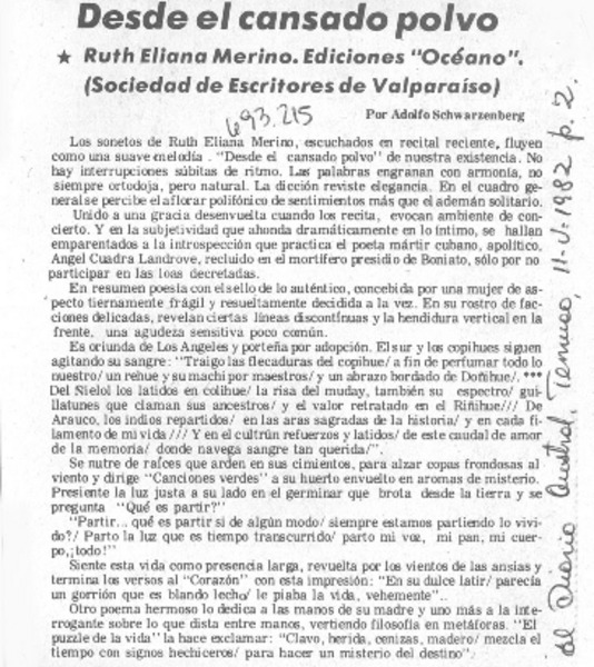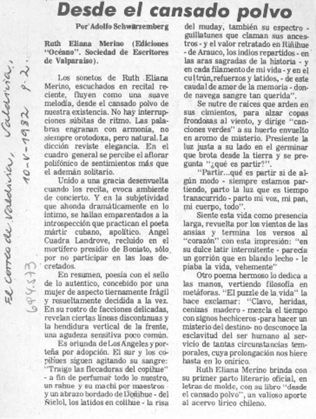 Desde el cansado polvo [artículo] Adolfo Schwarzenberg.
