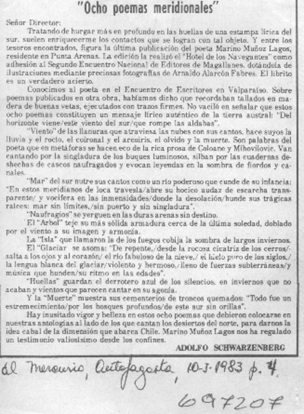 Ocho poemas meridionales" [artículo] Adolfo Schwarzenberg.