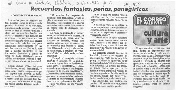 Recuerdos, fantasías, penas, panegíricos [artículo] Adolfo Schwarzenberg.