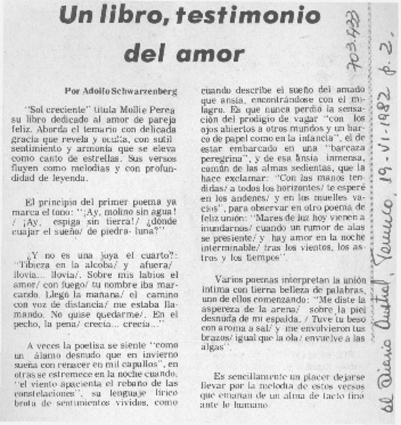 Un libro, testimonio del amor [artículo] Adolfo Schwarzenberg.