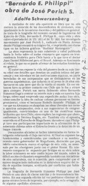 "Bernardo E. Philippi" obra de José Perich S. [artículo] Adolfo Schwarzenberg.
