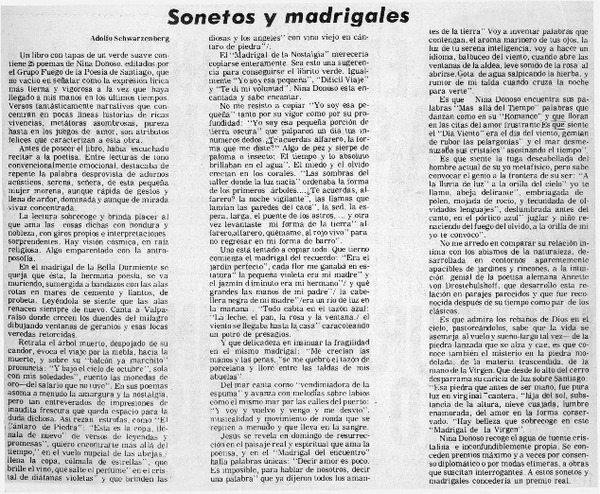 Sonetos y madrigales [artículo] Adolfo Schwarzenberg.