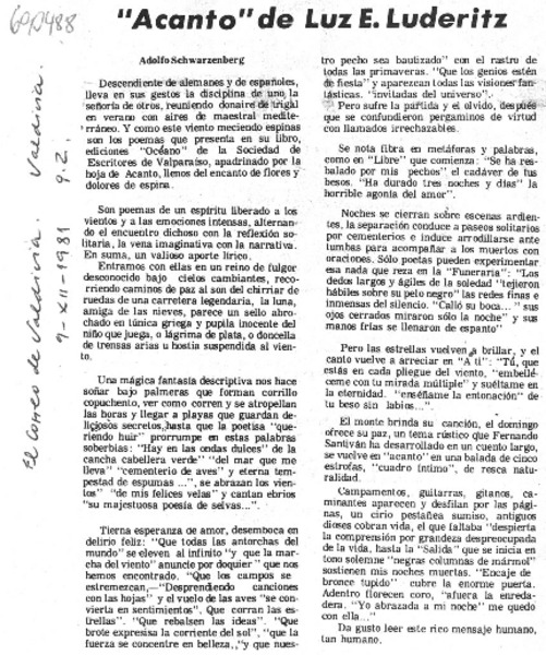 "Acanto" de Luz E. Luderitz [artículo] Adolfo Schwarzenberg.
