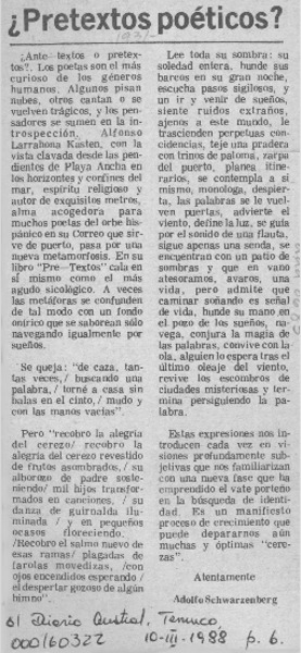 Pretextos poéticos? [artículo] Adolfo Schwarzenberg.