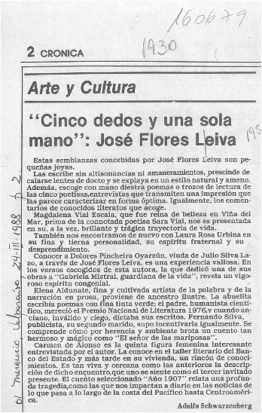 "Cinco dedos y una sola mano", José Flores Leiva [artículo] Adolfo Schwarzenberg.