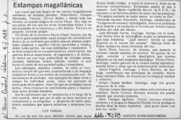 Estampas magallánicas [artículo] Adolfo Schwarzenberg.