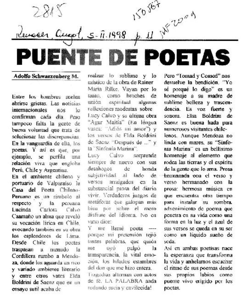 Puente de poetas [artículo] Adolfo Schwarzenberg M.