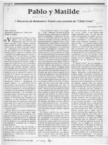 Pablo y Matilde [artículo] Radomiro Tomic.