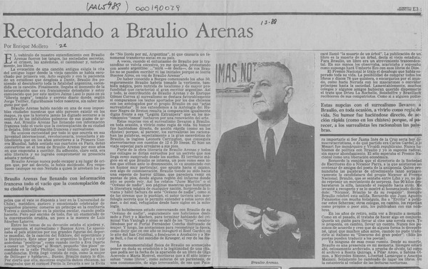 Recordando a Braulio Arenas [artículo] Enrique Molleto.