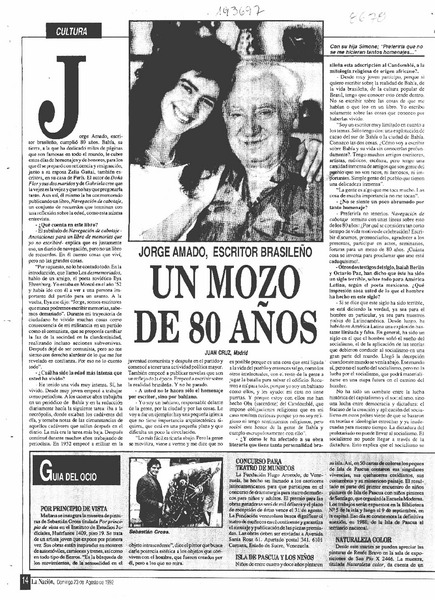 Jorge Amado, escritor brasileño, un mozo de 80 años [artículo] Juan Cruz.