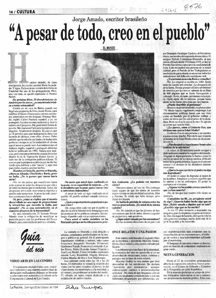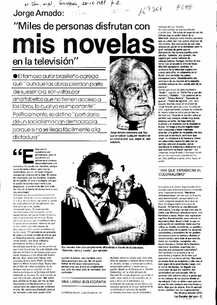 Jorge Amado "No anhelo el Premio Nobel, mi premio mas grande es el público [artículo] André Jouffé.
