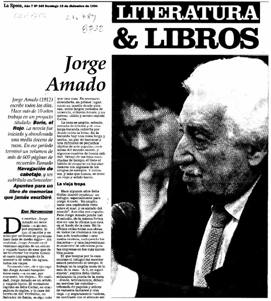 Jorge Amado a los 80, vivir y recordar lo vivido [artículo] Juan Cruz.