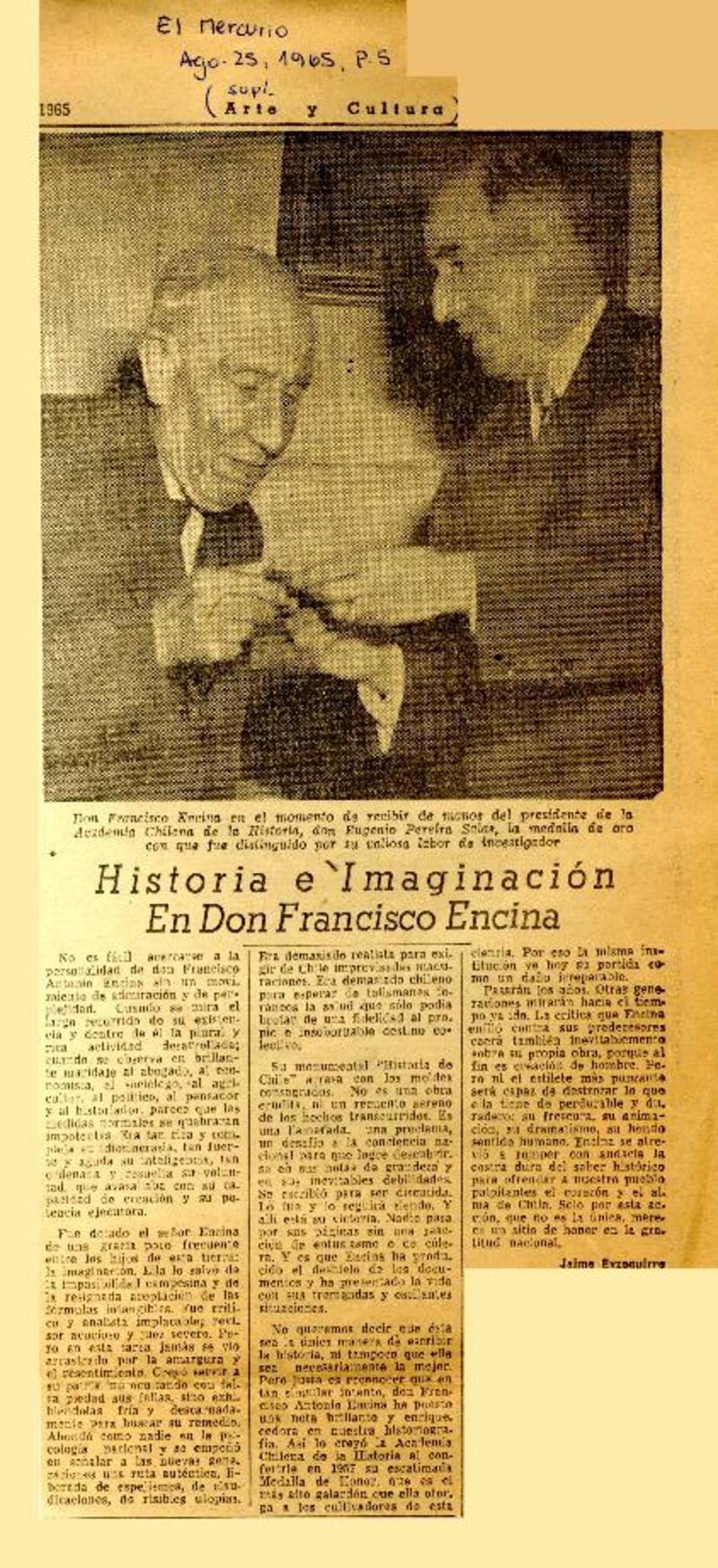 Historia e imaginación en don Francisco Encina [artículo] Jaime Eyzaguirre.