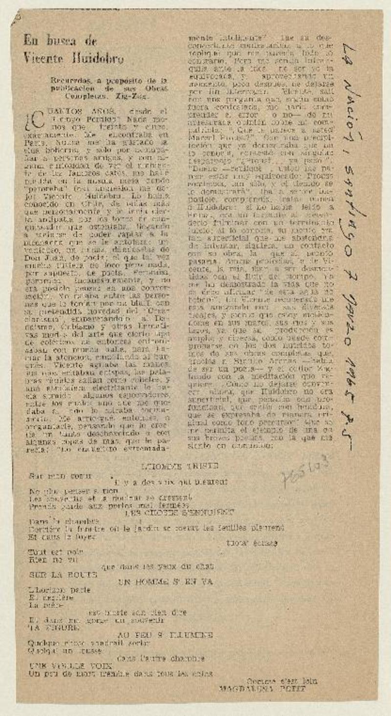 En busca de Vicente Huidobro [artículo] Magdalena Petit.