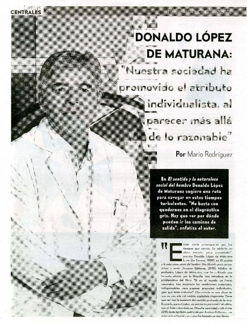 Donaldo López de Maturana : "Nuestra sociedad ha promovido el atributo individualista, al parecer más allá de lo razonable" [artículo] Por Mario Rodríguez.